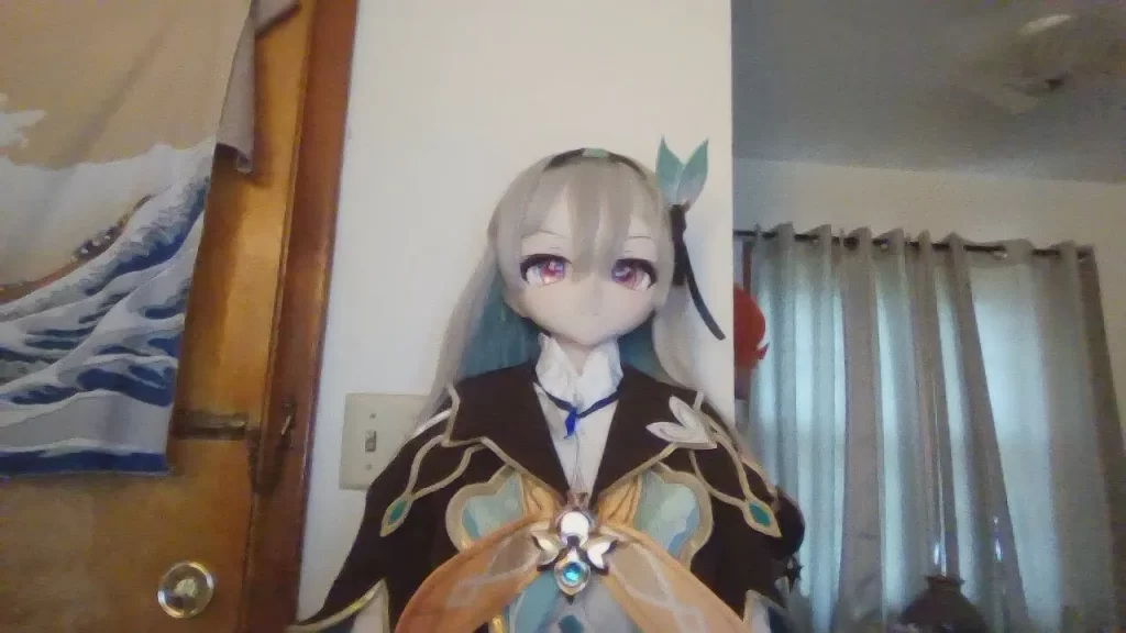 I finally got her costume put on! Yay-y! She is the perfect choice for my latest character doll. Her PVC head makes her hair very slippery though. I was thinking of putting some two-sided tape on her head. I also found a plastic lid to cover up the big hole in the back of her head. A little package tape and shazam! She’s got a full skull. The PVC head does take a little getting used to, I will admit. But I love her all the same. 🙂